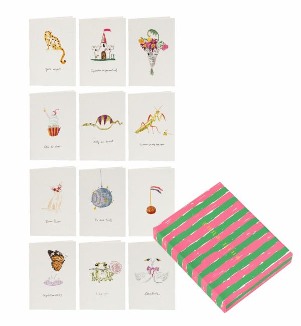 De Anna + Nina Assorted Greeting Cards Set of 12 heeft het perfecte assortiment kaarten voor heel veel leuke gelegenheden! Er is een lege ruimte om op te vullen met je eigen mooie woorden en verhalen . Laat je vrienden en familie weten dat je aan ze denkt en stuur ze een van deze mooie kaarten.