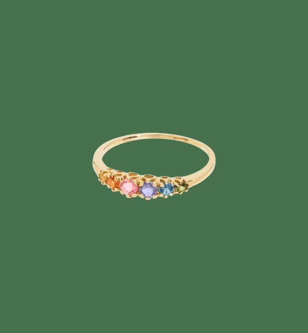 The Anna Ring Eclectic 14K is where elegance meets eclecticism. This beautiful piece is handcrafted from 100% recycled 14K gold and is set with gemstones that vibrantly sparkle in all rainbow colours. Embrace your unique style and let your personality shine through every colourful detail!
