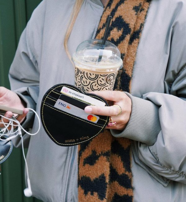 De Black Sweetheart Card Holder is een nieuw item in onze collectie. Dit item is gemaakt van echt leer in de vorm van een hart en heeft een zwarte kleur. Aan de achter kant van de pasjeshouder is een vakje met een rits waar je veilig je kleingeld kan opbergen. Dit item is een mooie toevoeging om al je pasjes bij elkaar te houden. Combineer het samen met de bijpassende tas voor een complete set!