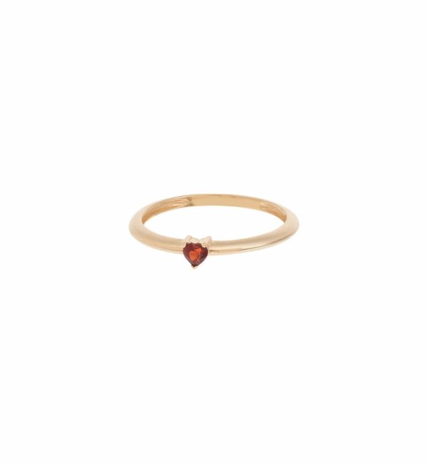 De Burning Heart Ring 14K is een prachtig item met een rode granaat steen in de vorm van een hart. De ring is gemaakt van 100% gerecycled 14K goud en heeft een drie prong setting. Combineer het samen met andere items uit de collectie voor de complete look.