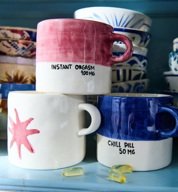 De Chill Pill Mok is een uniek handgeschilderd stuk dat je eraan zal herinneren om je thee bij te vullen en te ontspannen. Deze authentieke Anna + Nina mok is een absoluut statement stuk dat verzameld zou moeten worden tussen ons andere keramiek en zal de ster zijn van je prachtige collectie. Specificaties: • Materiaal: Keramiek • Afmetingen: 130 x 100 x 90 mm • Vaatwasser- en magnetronbestendig • Handgemaakt in Portugal