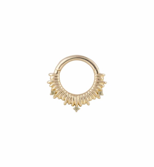 De Enigma Daith Piercing 14K is een uniek sieraad dat opvalt wanneer je het draagt. De piercing is gemaakt van 14K goud en heeft een dromerig ontwerp, ingelegd met drie prachtige peridoot edelstenen, deze piercing tilt je sieraden collectie naar een hoger niveau.