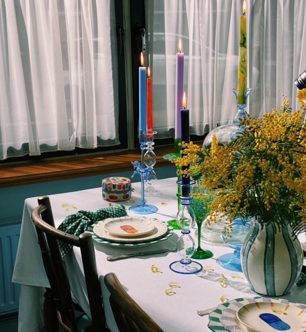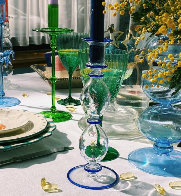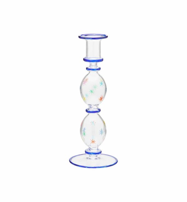 De Galaxy Kaarshouder neemt je mee op een kosmische reis met zijn kleurrijke sterrendesign. Dit universele stuk staat prachtig op je eettafel of in combinatie met onze andere unieke kandelaars. Specificaties: • Materiaal: Glas • Afmetingen: 85 x 85 x 230 mm • Gemaakt in China Let op! Laat kaarsen nooit onbeheerd achter! Brand de kaars nooit helemaal op en wees alert wanneer de kaars de houder raakt.