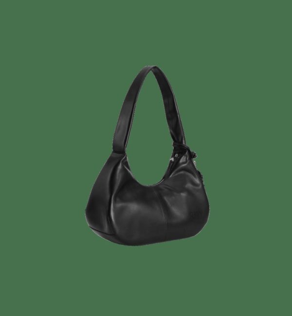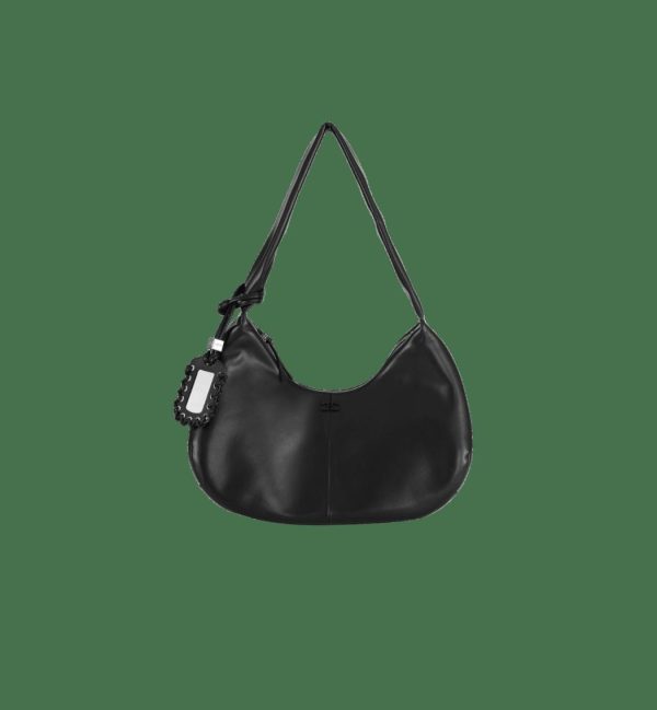 De GANNI Black Hobo Bou Bag is gemaakt van gerecycled leer met een superzachte, soepele afwerking, met korsetveter accenten, een spiegel hangtag en zilverkleurige hardware. De perfecte tas voor al je essentials.