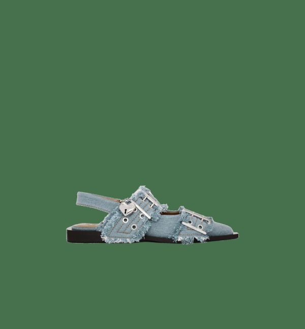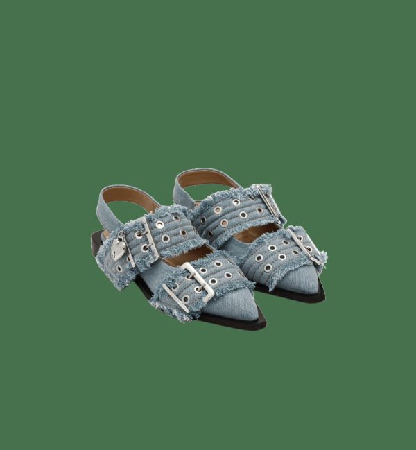 De GANNI Denim Feminine Buckle Ballerina zijn de perfecte elegante schoen die moeiteloos al je prachtige alledaagse outfits doen opvallen. Deze prachtige ballerina heeft een spitse neus, een vierkante blokhak en grote metalen gespen met gegraveerde GANNI logo’s. Laat deze eyecatcher je outfit net dat beetje extra geven!