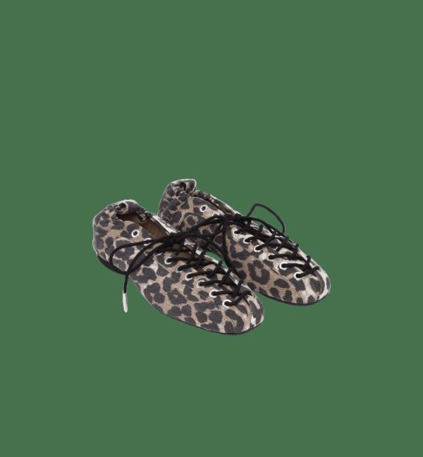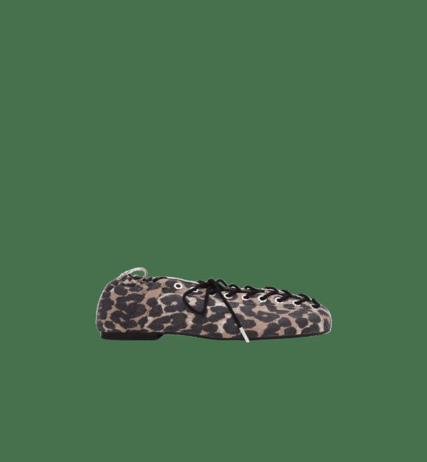 De GANNI Leopard Lace Up Ballerina zijn geïnspireerd op de veterschoenen uit 1920 en bouwen voort op de erfenis van de geliefde Buckle Ballerina. Deze ballerina’s zijn gemaakt van een organische katoenmix en hebben gekruiste veters voor gemakkelijk aan- en uittrekken. Deze schoenen maken je alledaagse outfit een echte blikkenvanger.
