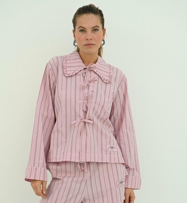 De GANNI Stripe Pyjama Shirt is een knus maar stijlvol item dat je dagelijks kan dragen! Breng meer kleur in je dag met deze broek. Combineer hem met het bijpassende broek voor de complete look.