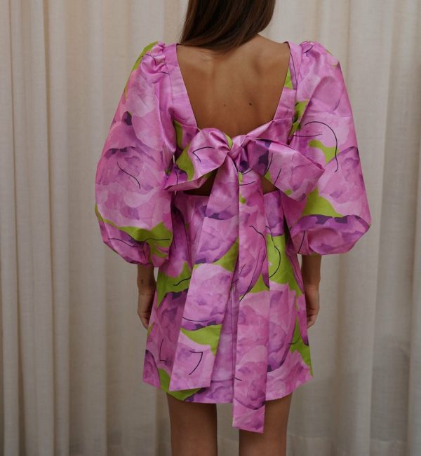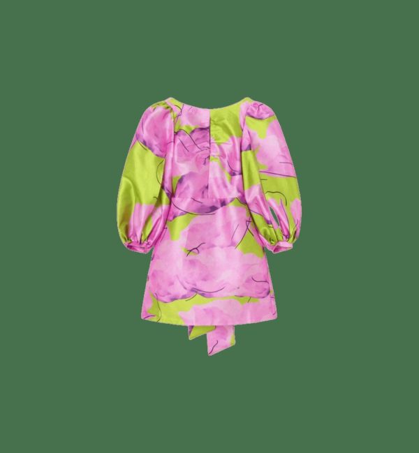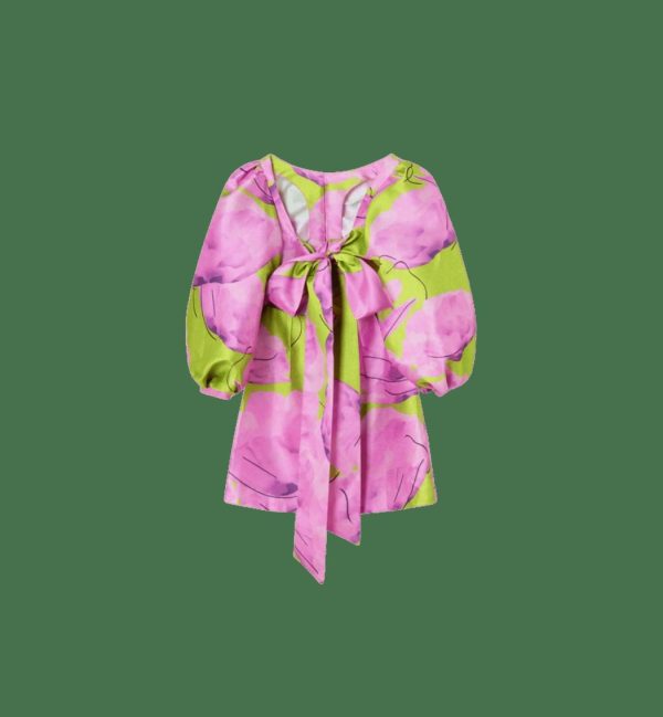 De Laagam Liza Fleur Papaver Short Dress is een oogverblindend stuk dat je dag zal opfleuren zodra je het ziet. Deze levendige jurk is uitgevoerd in een prachtige groene kleur met een fel roze bloemendessin en een speelse grote strik op de open rug. De pofmouwen zijn gedeeltelijk open door een split aan de voorkant. Combineer deze eyecatcher met je favoriete hakken voor de perfecte outfit.