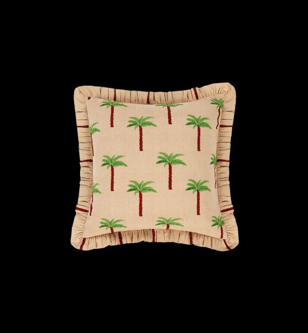 De Les Palmiers Frill Cushion is een buitengewoon individueel gemaakt kussen dat je interieur opvrolijkt. De combinatie van de palmbomenprint en de ruffel fleurt je huis op. Combineer ze met de andere kussens om een leuke woonsfeer te creëren in elke kamer waar je ze neerlegt.