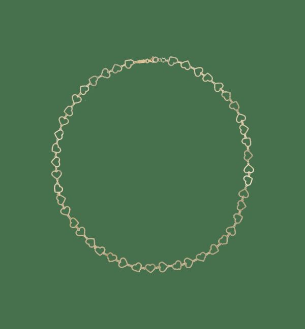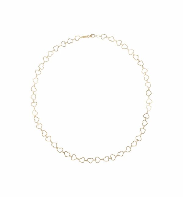 The Linked Hearts Necklace 14K is a stunning piece that can be worn every day. The chain has a design of hearts linked to each other. Perfect on its own, or worn with a mixture of our other necklaces.