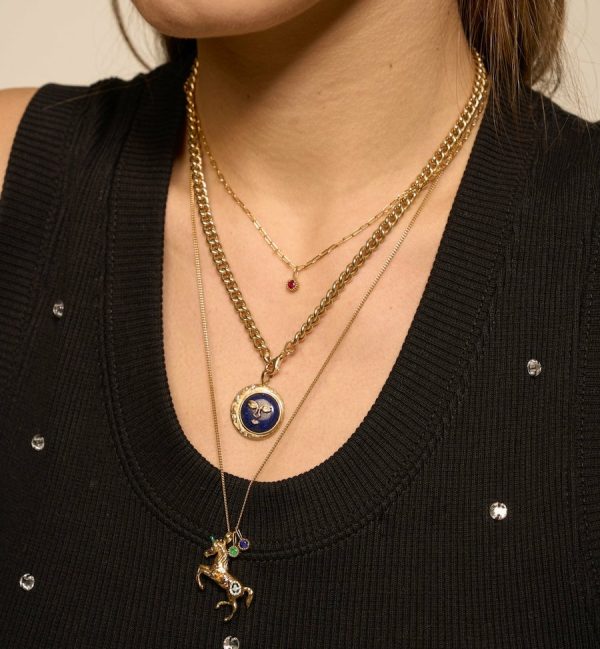 The Moon Eclipse Charm 14K is a handmade celestial marvel that will adorn your jewellery collection. This captivating piece captures the enchanting beauty of a lunar eclipse through the magical Lapis Lazuli stone set in the middle of the charm. Lapis stones are natural products and can therefore vary in colour. Let this charm be the perfect touch of cosmic mystique to all your favourite jewellery.