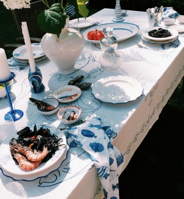De More Fish in The Sea Napkin Set is gemaakt van 100% organisch katoen. De set heeft een prachtig vismotief zal je doen denken aan de zon, zeewind en mooie stranden. Combineer het samen met andere items uit de SS25 collectie en je hebt de perfecte set-up voor een uitzonderlijke tafelschikking.