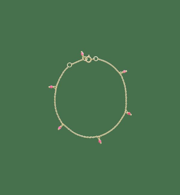 The Nova Blush Bracelet 14K embodies the essence of cosmic beauty. This celestial bracelet is handmade using 100% recycled 14K gold and has Pink Tourmaline gemstones hanging from its interlinked chains. Perfect for adding a touch of heavenly charm to any occasion.