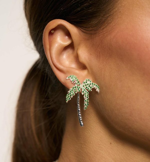 De Single Palmier Stud is een echte blikkenvanger. Dit item heeft het design van een palmboom met groene Zirconia steentjes als bladeren. De stam van de boom zit aan de achterkant waardoor deze oorbel een echt 3D effect krijgt. Combineer dit item met andere artikelen uit de collectie voor de perfecte match.