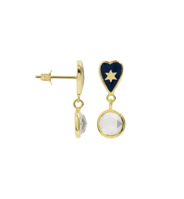 The Single Sky Rain Stud Earring 14K adds a mesmerizing accent to your ears. This romantic earring consists of an enchanting enamel dark blue heart stud with a dangling white topaz that captures the essence of a light rainfall against a clear sky. Perfect for adding a touch of natural wonder to every look.
