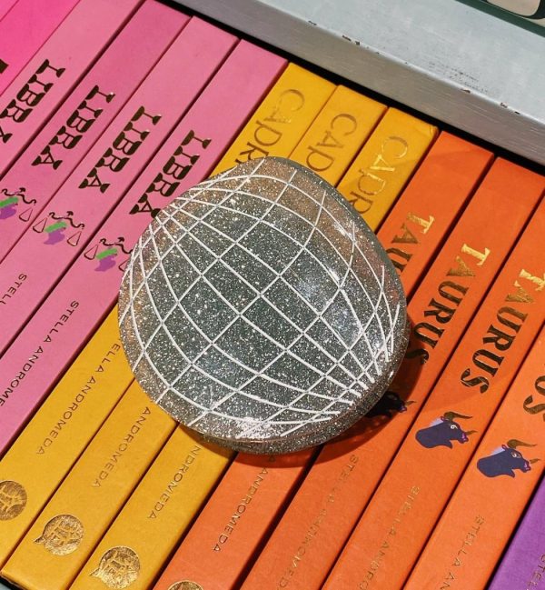 De Solar Eclipse Disco Ball Hair Clip is een extravagant stuk dat je outfit een extra touch geeft. De clip is zorgvuldig gemaakt van celluloseacetaat – een milieuvriendelijk, biologisch afbreekbaar materiaal gemaakt van gerecyclede houtpulp en handgeschilderd. Deze discobal maakt van elke outfit een echt feestje.