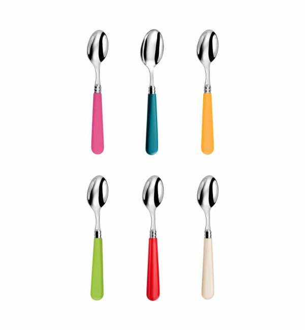 Specificaties:• 6x theelepels •Vaatwasserbestendig• Kleuren: turkoois, limoengroen, felroze, rood, oranje & ivoor